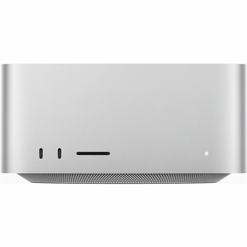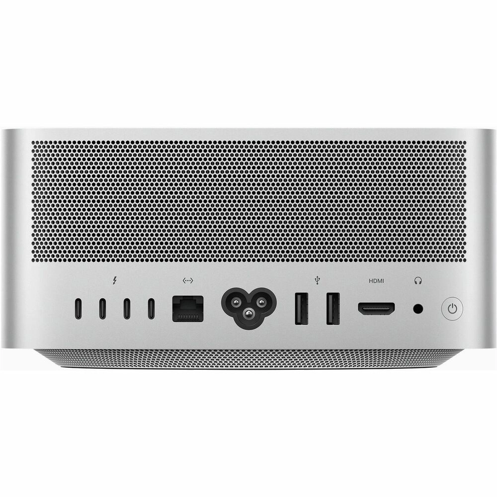 A pesar de su potencia descomunal, el Mac Studio mantiene un perfil compacto de solo 9.5cm de altura y un peso de 3.64kg. Su sistema de refrigeración inteligente mantiene un funcionamiento silencioso incluso bajo cargas extremas, mientras su certificación Energy Star confirma su eficiencia energética.