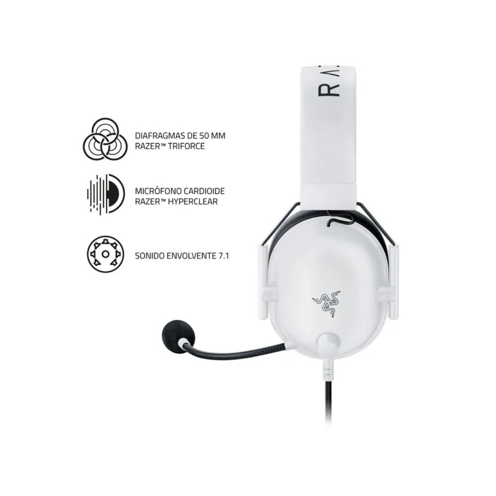 El Razer BlackShark V2 X Blanco (modelo RZ04-03240100-R3U1) es un auricular gamer con cable diseñado para ofrecer un sonido potente, una comunicación clara y una comodidad excepcional durante largas sesiones de juego. Con la reconocida calidad de Razer, combina ligereza, durabilidad y un rendimiento acústico superior, ideal para jugadores competitivos y streamers.