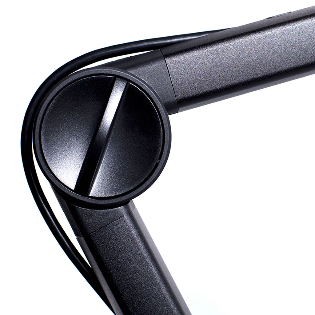 El soporte de brazo premium Compass permite ajustar fácilmente la posición del micrófono, ofreciendo estabilidad, movilidad y un diseño elegante ideal para estudios o setups gamer. - Soporte Antivibración Radius III: