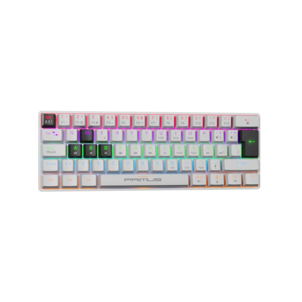El Primus Ballista61T PKS-060W-S es un teclado mecánico compacto 60%, diseñado para jugadores que buscan máxima eficiencia en el espacio sin sacrificar rendimiento. Con switches rojos lineales, retroiluminación RGB y diseño hot-swappable, es la herramienta ideal para quienes exigen velocidad, estilo y personalización total.